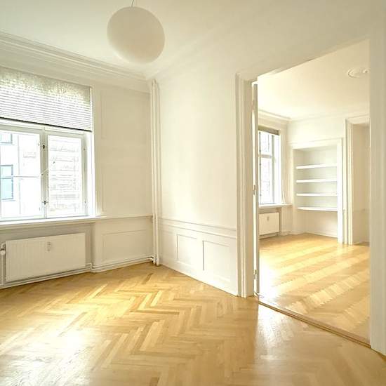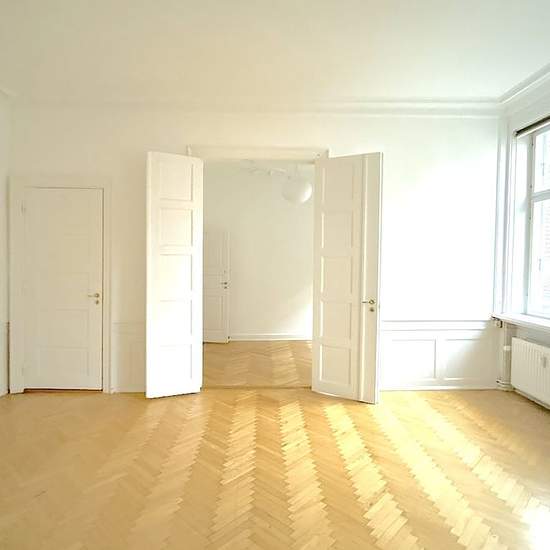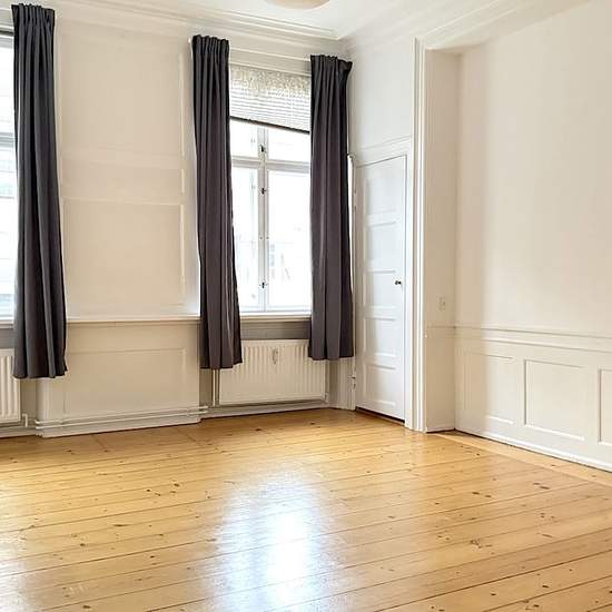 The apartment comprises an entrance hall and two en‑suite living rooms. A large kitchen with room for a small dining area, as well as a bathroom with a washing machine/dryer. Four bedrooms and another bathroom with a shower enclosure. The property is located close to Nyhavn, within walking distance of the Metro and Copenhagen’s many lovely shops and cozy restaurants and cafés.
