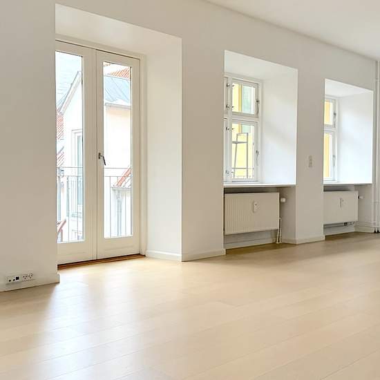 The apartment is located on the 2nd floor in a well-maintained and charming quiet courtyard. It consists of an entrance hall, a spacious living room that is open to the kitchen and has access to a lovely balcony. Large bedroom with built-in wardrobes and a modern bathroom with a washer/dryer. There is also a private cellar storage room. Situated within a short walking distance to the Metro, right by Strøget and all the best Copenhagen has to offer in shopping, restaurants and cafés.