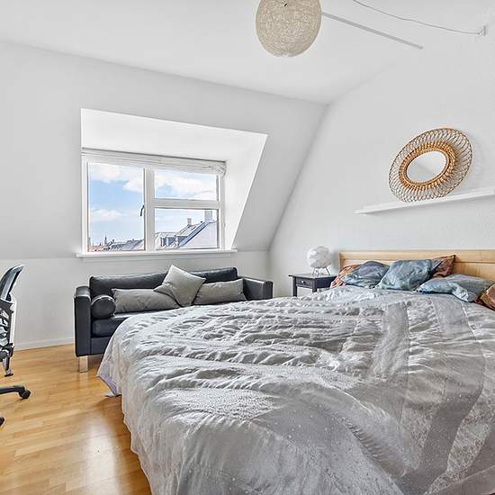 For rent for 6 months. Lovely furnished apartment in Copenhagen V with a large outdoor area where there is room for many cosy moments. The area buzzes with life and culture, and you're close to cafés, restaurants, shops and public transport. The apartment comprises an entrance hall, a large open-plan kitchen/dining and living area with access to the cosy balcony. Three good bedrooms and a bathroom with shower, washing machine and tumble dryer. No cellar storage is included.