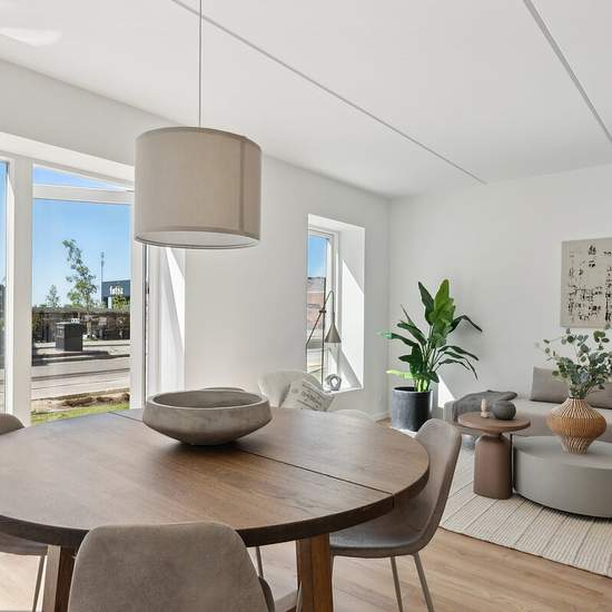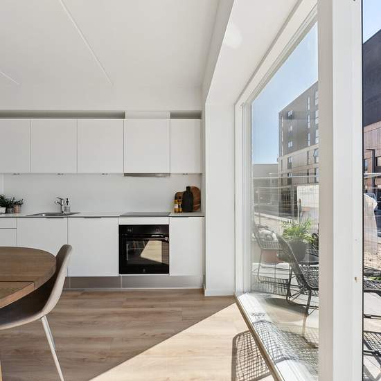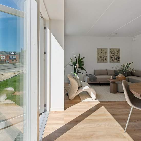 Your new home – in the middle of green surroundings and close to everything At Egedal Have we are building high-quality homes – from one-room apartments to spacious homes with up to 6 rooms. Many of the homes have two levels, and the majority have either a terrace, a balcony or a roof terrace where you can enjoy life outdoors. More time for living Here you get more space and better opportunities to enjoy everyday life. Shopping, school, childcare and the station are right nearby, and nature is close. On the roof you'll find a beautiful orang...