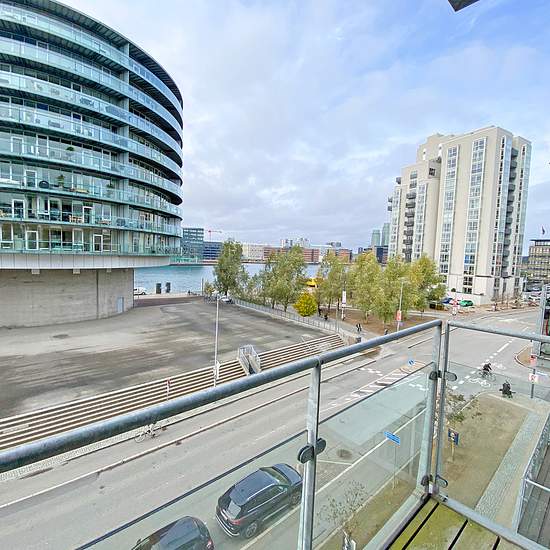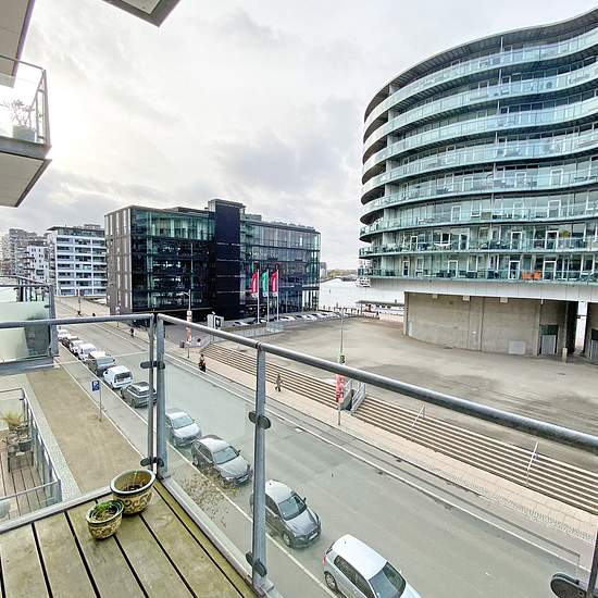 It's rare that we get such a large and spacious 2-room apartment for rent. You'll live with a lovely view over the water on the 3rd floor, where you can enjoy the apartment's large balcony. There is plenty of storage space, an elevator that opens right at the door, and large expanses of windows that let the light flood in. The apartment is rented for 2 years from 1 December 2025. The apartment contains: a good entrance hall with built-in wardrobes, a huge open-plan living room and kitchen with direct access to the balcony, a large bedroom wi...