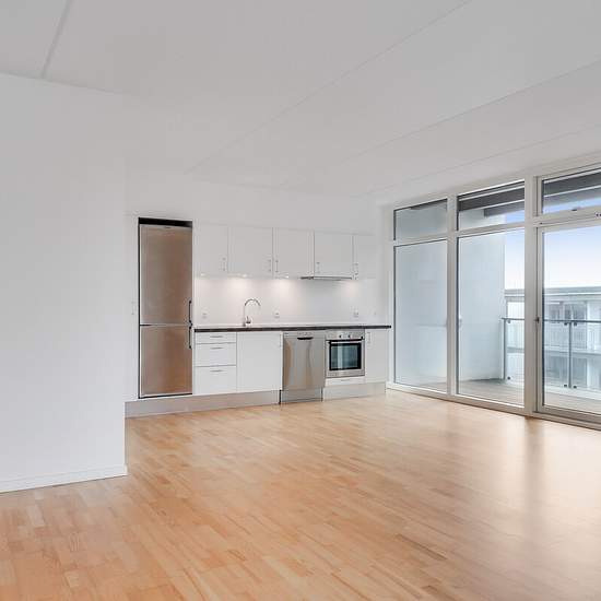 Masser of light – spacious rooms – large open-plan kitchen/living area – and not least a large sun-facing, west-facing balcony! The apartment is ready for takeover – already from March 1, 2026! - Entrance hall with good cupboard space and room for outerwear - Lovely bathroom with underfloor heating and separate shower area - Wall-mounted toilet and a private washer-dryer column - Large, bright kitchen/living area of no less than 35 m2 - Classic white kitchen with all appliances from Simens - Access to a large west-facing balcony with wooden...