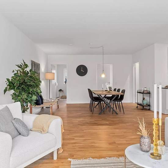 Now one of the lovely single-storey terraced houses in Lindehaven is being offered! Here you get a 4-room terraced house on one level, with 3 good bedrooms, 2 bathrooms and a large open-plan kitchen/living area. In the terraced house, the spacious entrance hall provides room for outerwear and shoes, and gives access to the utility room and one of the bathrooms. You then move on to the heart of the house, the large kitchen with direct connection to the living room. From the living room you have direct access to the home's two smaller rooms wi...