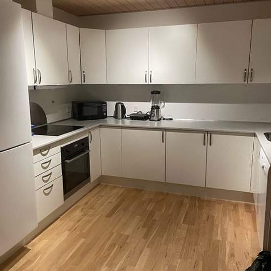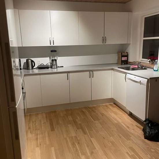 Really nice open-plan kitchen/living area that makes it possible to cook while communicating with those in the living room. There is a nice playground nearby. A shed is included and there is also a small loft/attic storage space. There is the option to park a car in front of your townhouse; otherwise there is communal parking. Info: Advance payments are settled directly with the utility companies.