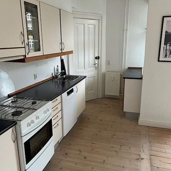 Bright 2-room apartment located on Borgergade, 9000 Aalborg. The apartment is pleasantly centrally located in Aalborg, a short distance from the waterfront, charming restaurants/cafés, numerous shopping options, and good public transport links. The apartment offers a lovely kitchen with good storage and the option to install your own dishwasher, as well as a spacious, bright living room with access to a pleasant balcony. In addition, the property includes a comfortable bedroom with built-in wardrobes and an attractive bathroom with a separ...