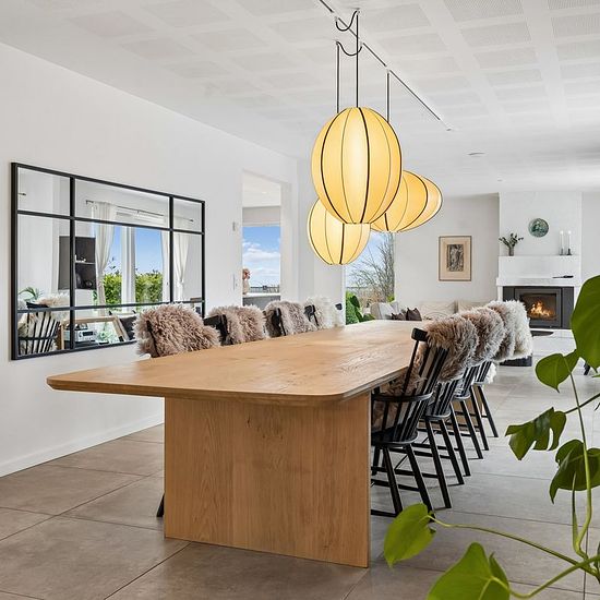 Extensively renovated and ready to move into, with partial furnishings. At Stejlbjergparken you now have the opportunity to rent a fantastic property of 325 m2. The home offers 4 well-appointed bedrooms and a large master suite with walk-in, a bright, spacious kitchen-dining area with a fireplace lounge, 2 bathrooms and a guest toilet. The property is located at the end of a quiet cul-de-sac and borders directly onto a small woodland area in the backyard. From Stejlbjergparken you are a short distance from the Bredballe center with several s...