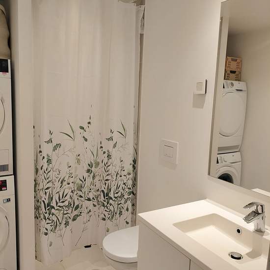 Lys lejlighed med egen terrasse, beliggende ved fjord og natur