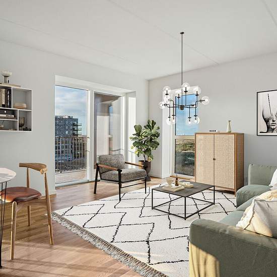 Lys og stor 2-værelses lejlighed med overdækket altan og stor stue