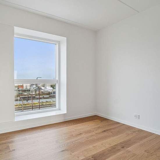 About the apartment: This lovely, optimised apartment welcomes you into a separate bright entrance hall with space for outerwear and access to a large bedroom with room for a big bed – from the bedroom you also have access to the apartment’s storage room, which can advantageously be used as a walk-in if preferred. From the entrance you also have access to the bathroom, which is finished in a timeless, attractive design, is spacious and has a separate shower as well as both a washing machine and a tumble dryer. In the large, bright kitchen-li...