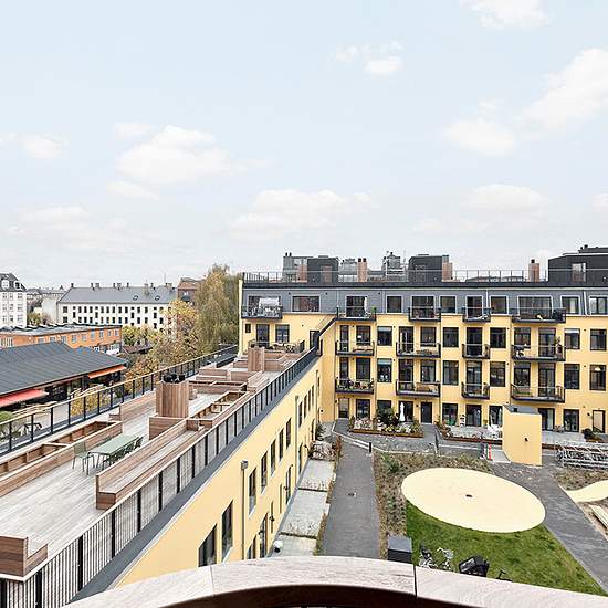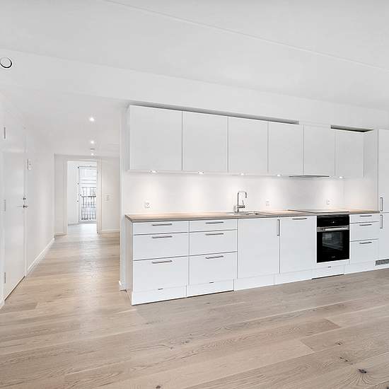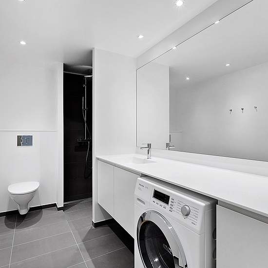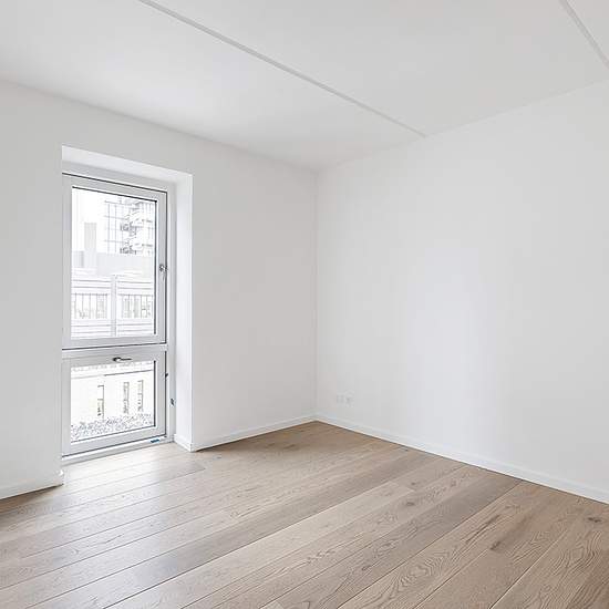 The apartment features an open entrance hall with space for a wardrobe, a stylish bathroom finished in gray tiles with a separate shower, underfloor heating and a combined washer-dryer. Large, well-laid-out living room with access to a sunny balcony facing the charming courtyard and open to the kitchen. Bedroom with plenty of room for a wardrobe as well as an additional room with built-in closets. The apartment also includes a private storage room in the basement. There is access to three lovely communal roof terraces and a pleasant courtyar...