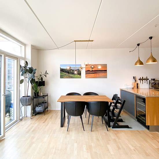 On Amerika Plads sits this bright 103 m² apartment in a modern and well-maintained building with an elevator. The area is known for its peaceful atmosphere close to the water, while the city is just around the corner. The apartment comprises: a spacious entrance hall, a neat and stylish bathroom with a washing machine and dryer, three bright bedrooms, and an open-plan kitchen and living room in a simple and functional design — including an integrated wine cooler. From the kitchen-dining area there is access to a spacious balcony with views ...