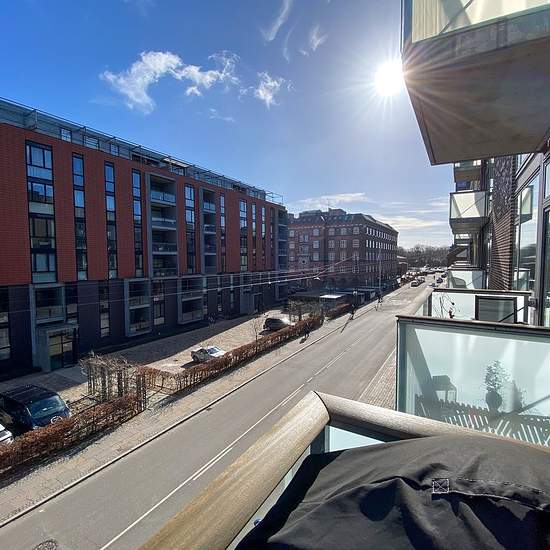 On Amerika Plads is this bright 103 m² apartment in a modern, well-maintained building with an elevator. The area is known for its tranquil atmosphere close to the water, while the city is just around the corner. The apartment comprises: a spacious entrance hall, a neat and stylish bathroom with a washer and dryer, three bright bedrooms, and an open-plan kitchen and living room in a simple, functional design — including an integrated wine cooler. From the kitchen/dining area there is access to a spacious balcony with views of the water. In ...