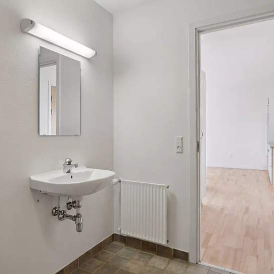 The apartment is arranged with a kitchen open to the living room, a bedroom and a bathroom. The property has: Elevator Shared laundry Option to rent a parking space Electricity, water and heating are billed directly to the utility companies. The pictures and the floor plan are of a similar rental unit.