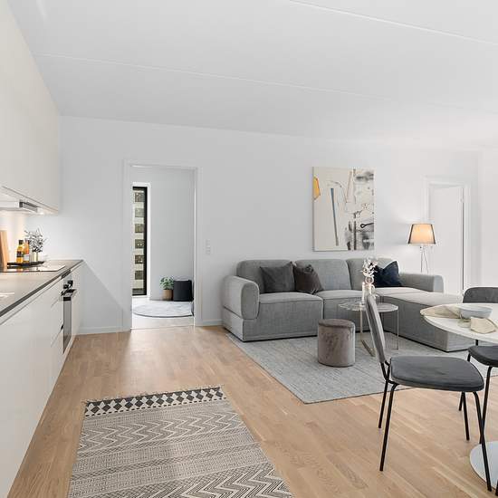 Kronehaverne has it all. Live close to green nature, with quick access to city life. Welcome to Kronehaverne’s 170 Swan‑labelled 2-, 3- and 4-room apartments in Ørestad. Here you will live in the perfect mix of vibrant urban life and peaceful nature. In the apartments you can feel the holistic, sustainable design line that creates the perfect setting for your future home. All rooms are bright and inviting with sleek wooden floors and simple tiles. On selected walls in the apartment there is concrete, creating an exciting contrast in an authe...