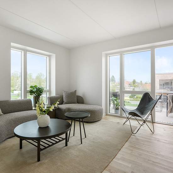 Selmerhusene is the final area in Bindesbøll Byen. By the end of 2025 all three phases of Selmerhusene will have been handed over and the district will be completely finished. Selmerhusene consists of four open block buildings and each block has its own cosy courtyard. There are one-, two-, three-, four- and five-room apartments, so there are apartments to suit every size need. All apartments have large terraces or balconies ranging from 5.2 m2 to 10.8 m2. Some apartments have two balconies and some have a roof terrace. The location is excel...