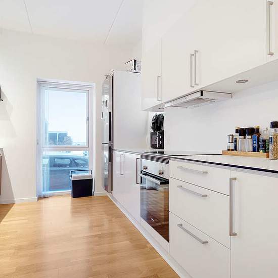 This nice two-room apartment offers a modern open-plan kitchen/living area and a large bedroom.