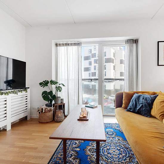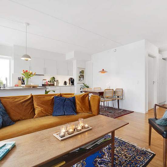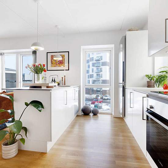 This three-room apartment offers a bright open-plan kitchen/living area with plenty of furnishing options.