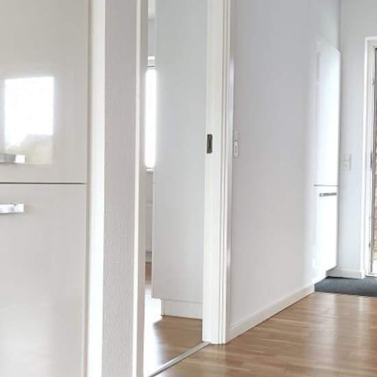 Modern and well-laid-out bright 4-room apartment, 117 m2, for rent Contains: entrance hall with cupboards, white open Alno kitchen connected to the living room with fridge/freezer, built-in oven, extractor hood, dishwasher, ceramic hob. Large nice bathroom with wall-mounted Ifö toilet, large shower enclosure. Large children's room with a closet. Bedroom with 2 closets. Oak parquet floors with lacquer in all rooms. Cable TV via YouSee. Parking space close to the property. The apartment is located in green and peaceful surroundings. Tenant mus...