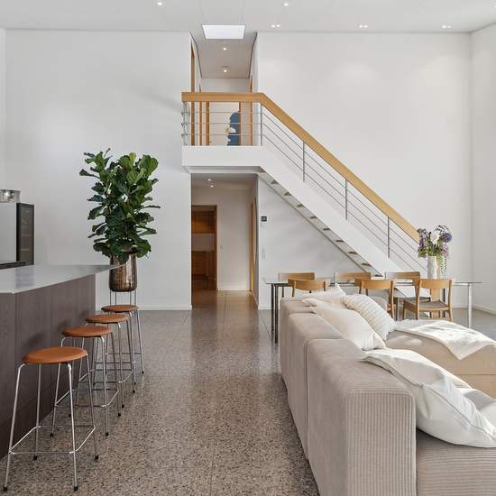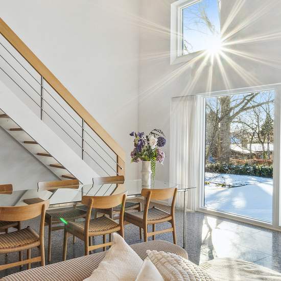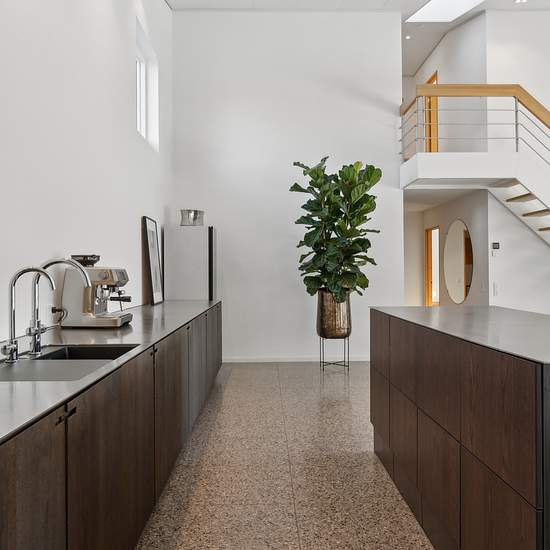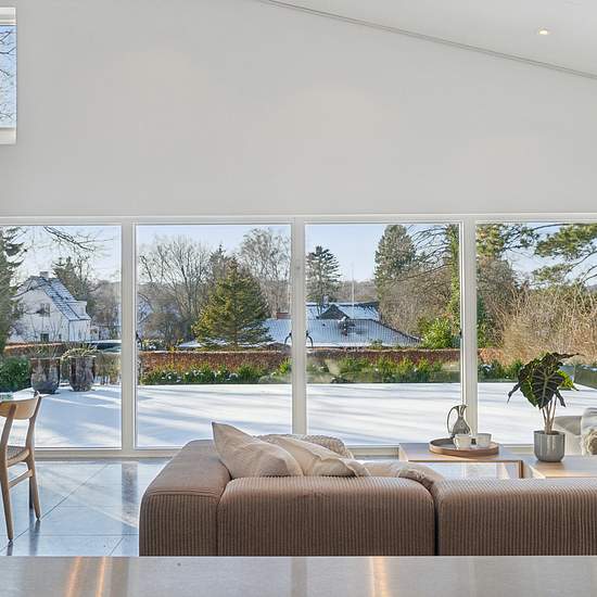 Huset er attraktivt beliggende centralt i Trørød, med kun få minutters gå gang til de lokale butikker og indkøbsmuligheder. Huset er opført i år 2019 og står i flot og moderne stand og er udført i eksklusive materialer og med luksuriøse hårde hvidevarer. Her er en separat garage på hele 50 m2, som har flere anvendelsesmuligheder. Man ankommer i husets entre med plads til overtøj i de indbyggede skabe. Herfra er videre adgang til husets store og åbne køkken alrum med vinduespartier mod haven. Rummet har dobbelt loftshøjde, et imponerende nat...