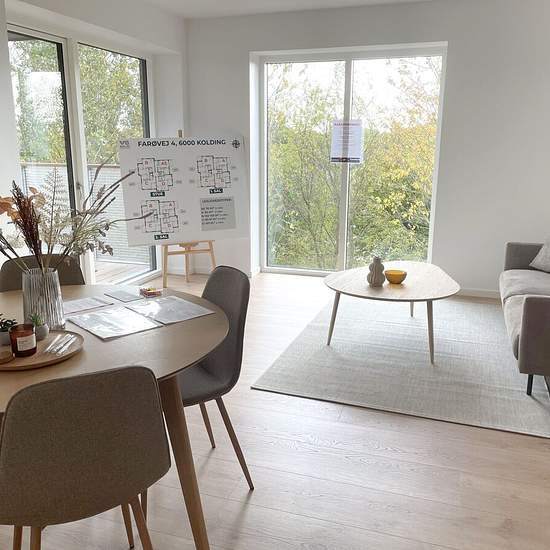 Brand-new energy-efficient homes - with large, lovely sunny balconies in a beautiful natural area on the Drejen Peninsula! Pets are allowed by agreement with us — for pets, one month's rent is required as prepaid rent. Free parking area with your own parking space in a carport — plus several guest parking spaces! 1⃣ Spacious rooms with built-in closets 2⃣ Good storage room in one of the rooms, with plenty of space for storage 3⃣ Large open-plan kitchen/dining area with all major appliances 4⃣ Spacious living rooms with lovely sunny balconie...