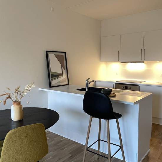 Live in Banebyen's best location — and at the most competitive prices! More about the apartments: Energy-efficient apartments 2- and 4-room apartments from ground floor to 5th floor Lovely communal areas, including 2 large roof terraces Spacious living rooms with balcony/terrace HTH kitchen with all major appliances Spacious bedrooms with built-in closets Pets allowed by arrangement Option for a washer-dryer and resident services
