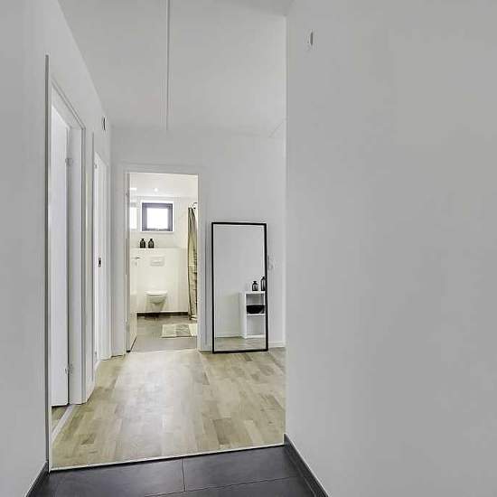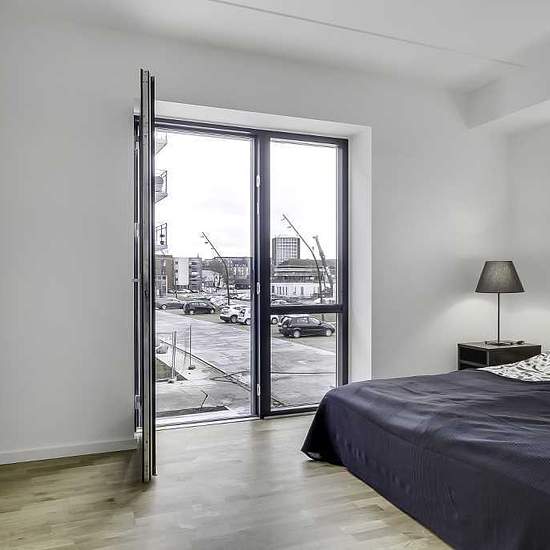 The 87 m2 apartment is located in Promenadebyen by the Odense harbour canal, close to the harbour bath, the station and near the city centre. The apartment has two large bright rooms, a large open-plan kitchen and living room, a bathroom with shower, and a balcony with views of the forest and the harbour. The entire apartment is bright and pleasant and features a kitchen with white units, a built-in oven, hob and refrigerator with freezer, and there is also a dishwasher. It is well laid out in connection with the living room, which has woode...