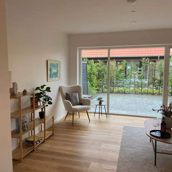 Welcome to Åsvej. Here you will find lovely apartments with an open-ended rental period, all built with plenty of natural light, attractive oak floors, stylish designer kitchens and nice bathrooms, as well as plenty of fixtures and cupboards. Each home has its own air conditioning system and underfloor heating throughout. In addition, the rental includes an adjoining terrace and a basement storage room. Parking is also available. It is also possible to obtain permission to keep 1 dog or 1 cat. The apartments are close to large green areas th...