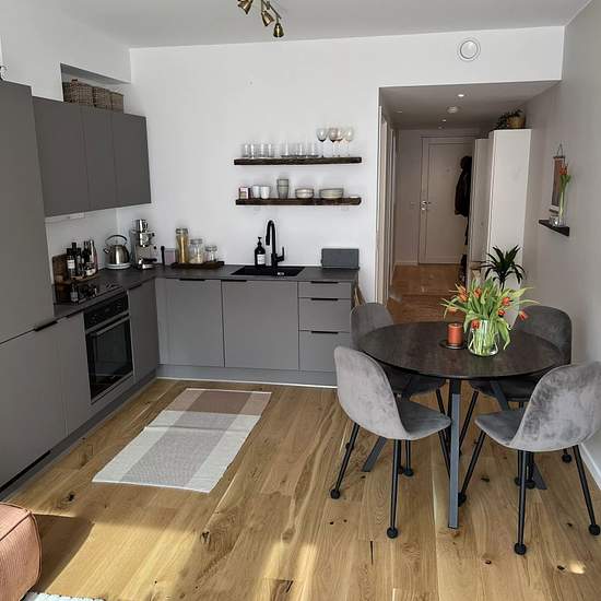 Here you have everything that central Aarhus has to offer within a short distance: grocery shopping, exciting shopping opportunities in the specialty shops of the Latin Quarter. The cozy restaurant and café scene is just a short walk away. In addition, the apartment is perfectly located in relation to several major educational institutions such as Aarhus University, BSS, VIA, and others. This newer 2-room penthouse is well laid out with a functional and attractive kitchen with good cupboard space and nice details in connection with the open...
