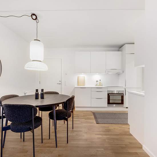 Solhusene comprises 80 rental apartments with a lovely location in the heart of Gellerup’s new, burgeoning neighborhood, Abildhøj. Solhusene thus has all of Gellerup’s many offerings on one side and the rest of Aarhus’ amenities on the other. Look forward to cooking in a quality kitchen from HTH, and enjoy that the apartment includes a full Electrolux appliance package with a pyrolytic oven, dishwasher and combined washer-dryer. The inviting apartments are ideal for singles and young couples who dream of living close to plenty of nature an...