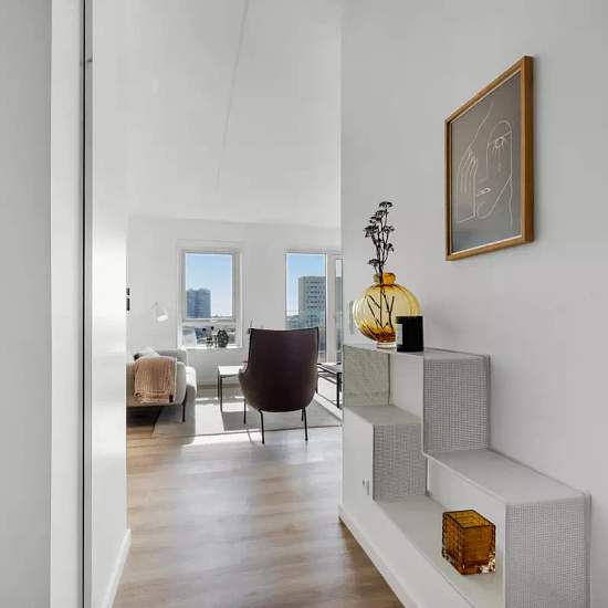 Welcome inside this newly built apartment in Parkbyen. Discover this inviting and optimally utilized 3-room apartment of 93 square meters, radiating comfort and modernity. The home is perfect for the single or couple who want a low-maintenance, stylish base with easy access to the city's vibrant life. The apartment offers an open and welcoming living room and kitchen/dining area, where light floods in through the large windows. The kitchen is equipped with a quality dishwasher, and from the spacious living room there is access to a cozy ba...