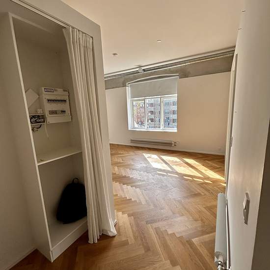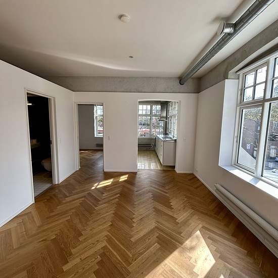 Trendy apartment in Trøjborg (Skovvangsvej) in New Yorker style. Risskov is located on the other side of the road, and the apartment is within cycling distance to Aarhus C and within walking distance to all amenities, such as shopping, fitness, Den Permanente beach, etc. The apartment consists of: - Kitchen - Room - Bedroom - Large living room with space for a dining table and sofa - Toilet The apartment includes a dishwasher, oven, cooktop, fridge/freezer, washing machine and dryer. One parking space at the property is included in the re...