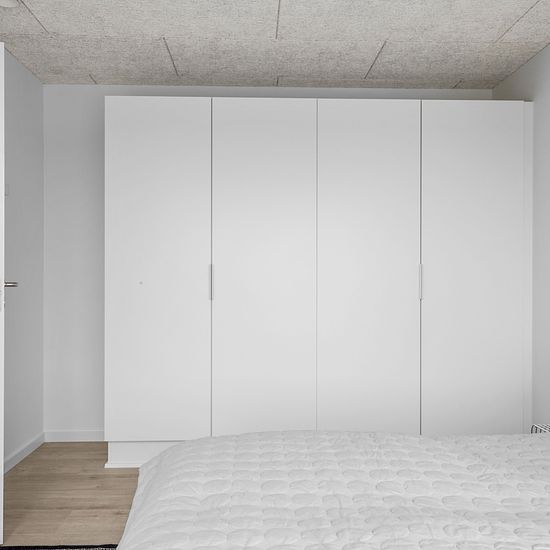 Welcome to your new family-friendly home in a modern single-story building with a private garden and terrace. The townhouses are constructed with a focus on high quality, functionality, and low energy consumption. You enter a spacious entrance hall with plenty of room for outerwear and shoes, and continue into the large open living room and kitchen-dining area. Here you will find all necessary major appliances, including an integrated dishwasher, as well as a fridge/freezer. The elegant white cabinet units from Svane Kitchen and the beautif...
