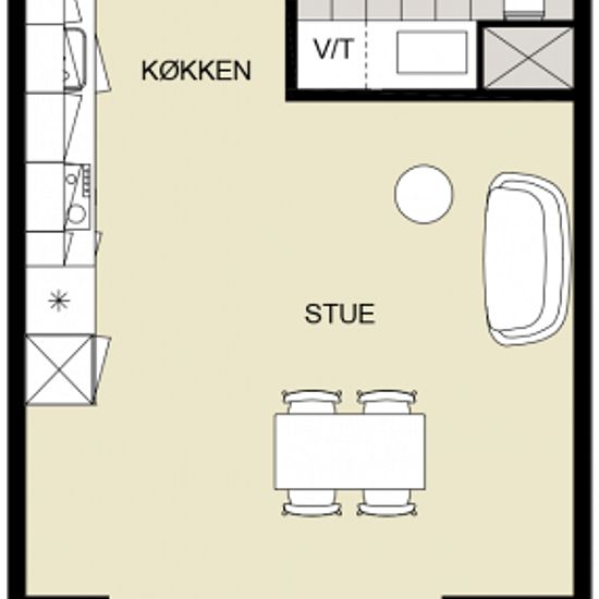 Fantastic bright 2-room apartment in newly constructed building from 2021/22. The rental unit is on the ground floor with an associated cozy terrace, which faces south. The apartment contains a large living room and kitchen-dining area with all major appliances, including an integrated dishwasher, nice white cabinet elements from Svane Kitchen, and beautiful laminate floors. The large floor-to-ceiling windows provide lovely natural light throughout the day. The bathroom has large gray tiles, a beautiful bright bathing environment, and a co...