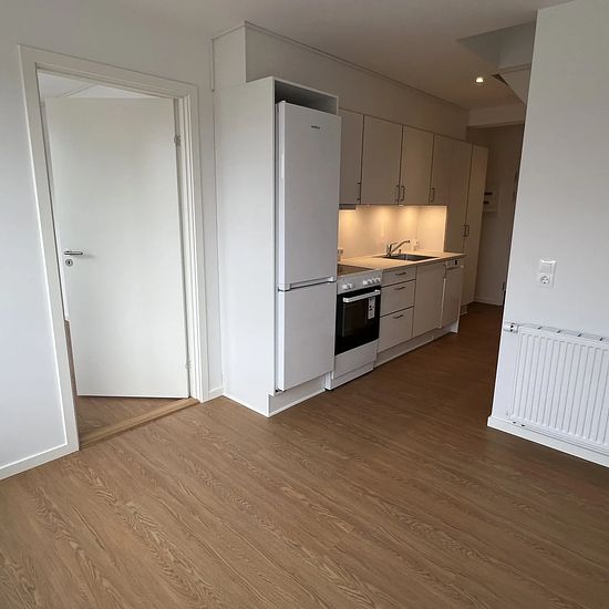 Newly built bright apartment An open and bright kitchen-living room area (including dishwasher), excellent for both cooking and socializing. A spacious bedroom with plenty of natural light, access to the roof terrace—a nice retreat for relaxation or cozy evenings with friends. Close to the pedestrian street, shopping, green natural areas, and a 2-minute walk to the nearest bus stop. Approximately 5 km to SDU, approximately 4 km to UCL at Niels Bohrs Alle, and approximately 2 km to UCL at Seebladsgade. Internet is included in the rent...