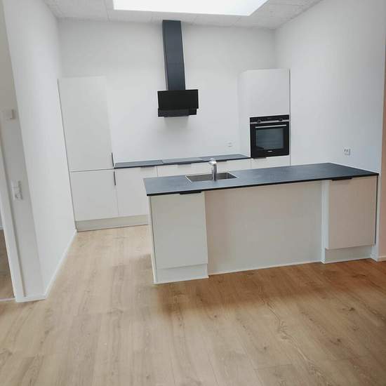 The home offers a fantastic open-plan kitchen/dining area and living room in one, where a stylish Svane kitchen with white units and appliances is integrated into the space. From the large open-plan living/dining area there is access to a private terrace and garden. The home also includes a bedroom with built-in wardrobes, as well as two additional rooms. Furthermore there is an attractive bathroom with a shower enclosure, white fitted cabinets, tiled floor and underfloor heating. Finally there is a good utility room with storage space and ...