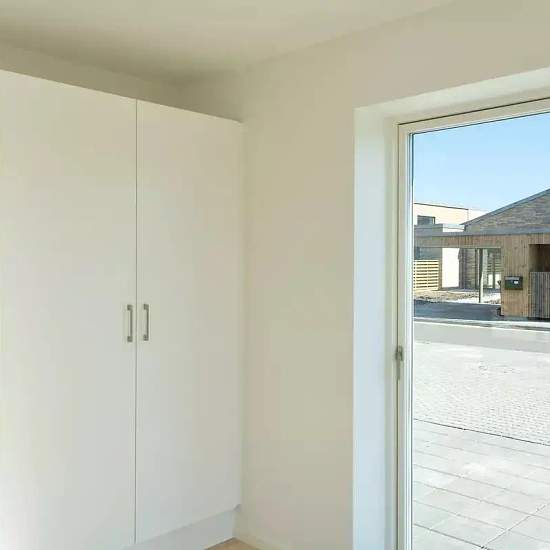 Newly built terraced house with a view of Fuglsang Lake