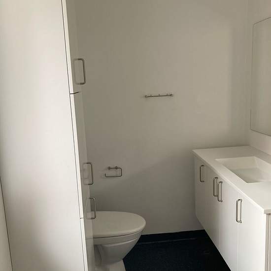 The apartment is located on the first floor; everything has been finished to the highest quality with high ceilings. The apartment comprises an entrance hall, two good bedrooms, a bathroom, and a large kitchen open to the living room — a perfect gathering spot. Beautiful new floors have been laid throughout the apartment, and all major appliances will be installed before moving in. An uncovered section of the stream runs behind the building and under the large terrace that belongs to the apartment, making it a lovely apartment in the middl...