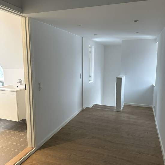 If you need space and enjoy the city centre, this apartment may be for you. The apartment has been completely renovated and is now ready to rent. It is laid out as follows. Private entrance from Graven. On the first floor there is a living room with access to a balcony. You will also find a brand-new kitchen from Svane, equipped with all major appliances. From the kitchen there is access to a room with three built-in wardrobes. In addition, there is a small guest toilet on the first floor. The second floor contains a lovely newly fitted bat...