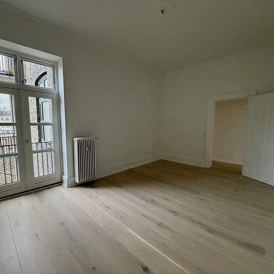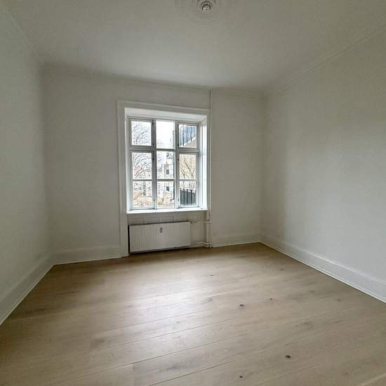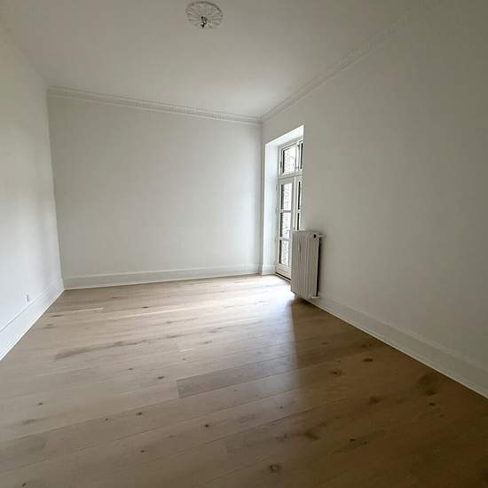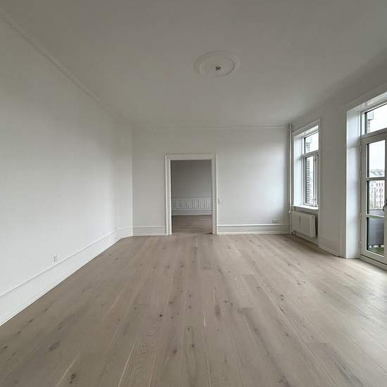 About This apartment is newly renovated and has a total of five rooms – three bedrooms and two living rooms. The apartment has a newly installed kitchen and bathroom, new flooring, and fresh paint. The location of this apartment is very unique, and you have an amazing view from the living rooms overlooking the lakes of Copenhagen. There is also a balcony off the kitchen facing the courtyard. You have an elevator that goes directly to the door.
