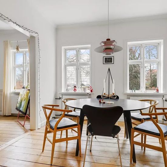 Welcome to a move-in ready 7-room apartment where classic mansion style meets modern comfort. Here you live in a beautiful, renovated building just a few meters from the city park and pedestrian street, giving you green spaces and the city's life right around the corner. The apartment appears bright and inviting with original plank floors, high ceilings, divided windows, and elegant wall panels that together create a calm and stylish expression. The layout is both spacious and functional. You enter an entrance hall with space for outerwear,...