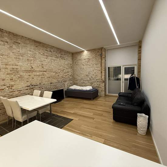 Are you looking for a very spacious and lovely studio apartment in Aarhus city centre? Then look here: The apartment is close to Strøget, the train station and the bus station, and the property has both an intercom and an elevator. Spacious entrance hall with a wall of cupboards, access to a large shower bathroom with washing machine and tumble dryer. From the entrance you enter the apartment's large living area with a beautiful new kitchen, spacious with plenty of room for a dining table and a sofa bed, high ceilings, exposed brick wall, la...