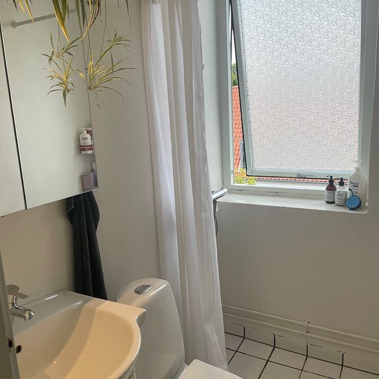 Nice 2-room apartment in Vejle center. The apartment consists of an entrance, kitchen, living room, bathroom, and bedroom. The apartment has a small balcony.