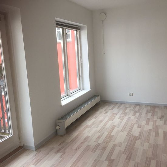 Extremely centrally located apartment in great condition, with its own small balcony. The apartment consists of a small entrance hall, a lovely large living room with an open kitchen, a large bedroom with a beautiful wall of wardrobes, and a good bathroom with space for a washing machine. There is the possibility of parking right by the apartment, which is a rarity when living in the middle of the pedestrian street. If you want to live as centrally as possible, this could be the apartment for you.