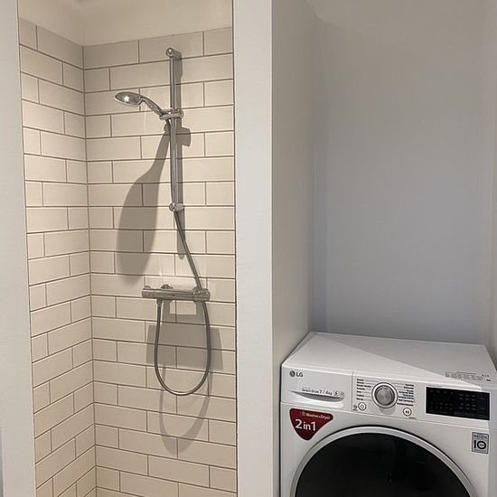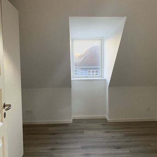 Spacious, roomy apartment in Dalum for rent The apartment includes an entrance hall with built-in wardrobes, a lovely large bathroom, kitchen/living room with access to a balcony, as well as access to two nice rooms. An elevator is installed in the building. There is a storage room belonging to the rental. The apartment has a fridge/freezer, induction hob, oven, extractor hood, dishwasher, and washing machine/dryer. There is an option to rent a parking space. It is allowed to have a small dog under 10 kg.