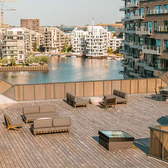 The home: Unique apartment in the iconic A-house – a residence that exudes both modern design and plenty of light and air. The home opens up to a large, inviting open-plan kitchen-living area with a beautiful view of the water. Here, the large windows let in lots of natural light; the raw columns and the attractive view of the water offer lovely moments — a perfect spot for both morning coffee and relaxation. The open-plan area provides ample space for both a dining table and a seating arrangement, and the three good-sized rooms offer fine s...