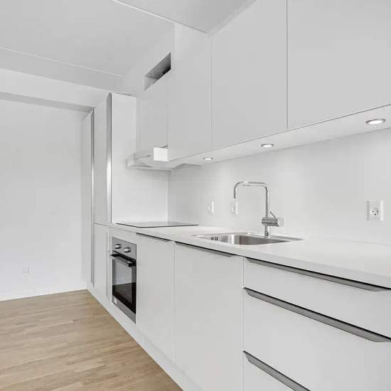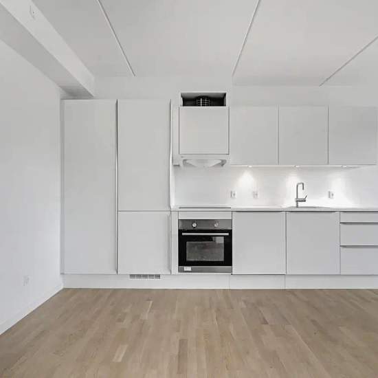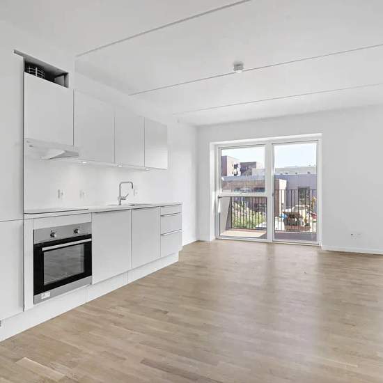 Velkommen indenfor i disse nyopførte 1-værelses lejligheder i Længehusene i Skejbyen Karré 12 Denne 1-værelses lejlighed måler 43 kvadratmeter, og rummer store vinduespartier, grebsfrit hvidt køkken, lamelparketgulve i egetræ og hårde hvidevarer fra Electrolux. Lejlighederne indeholder alt i hårde hvidevarer og der medfølger depotrum til alle boliger.