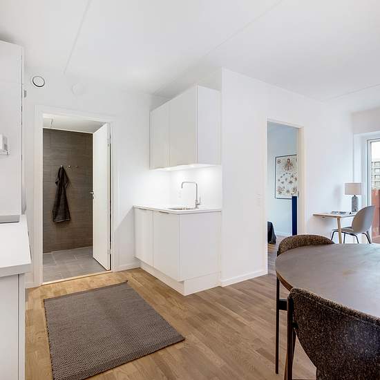 Solhusene byder på 80 lejeboliger med en skøn placering midt i Gellerups nye spirende kvarter, Abildhøj. Solhusene har dermed alle Gellerups mange tilbud til den ene side og Aarhus’ øvrige tilbud til den anden. Glæd dig til at lave mad i et kvalitetskøkken fra HTH, og nyd, at lejligheden har en fuld hvidevarepakke fra Electrolux med pyrolyseovn, opvaskemaskine samt kombineret vaske-tørremaskine. De indbydende lejligheder er ideelle til singler og unge par, der drømmer om at bo tæt på masser af natur og liv – og blot en kort cykeltur fra Aa...