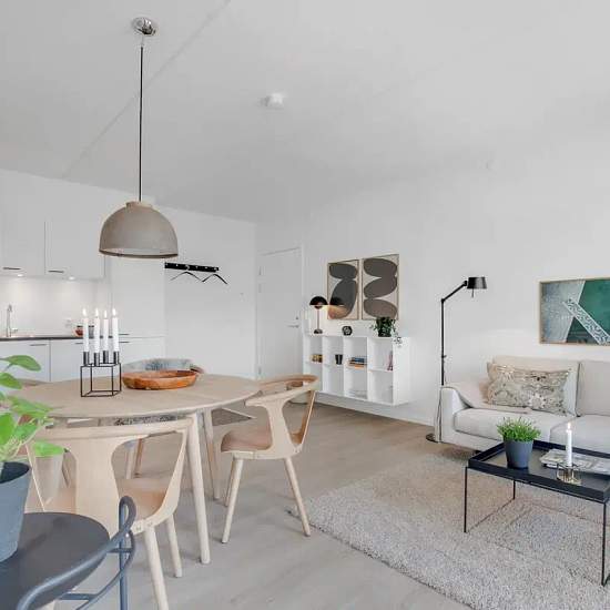 Ankomstpladsen markerer indgangen til Aalborgs populære bydel, Eternitten, hvor det vrimler med liv og en skøn, urban stemning. På Eternitten er du tæt på både busforbindelser, motorvej, fitness, dagligvarebutikker og meget mere. På Ankomstpladsen kan du vælge mellem 134 moderne 1-, 2- eller 3-værelses lejeboliger med gode lysforhold og et råt udtryk. Størstedelen af lejlighederne er indrettet med rå betonvægge og smarte newyorker-glasvægge, der skaber de perfekte rammer for en personlig stil. Lejlighederne har et lyst, nordisk look med gul...