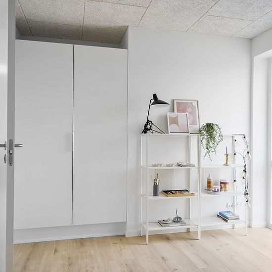 Velkommen til dit nye familievenlige hjem i et moderne étplansbyggeri med egen privat have og terrasse. Rækkehusene er opført med fokus på høj kvalitet, funktionalitet og lavt energiforbrug. Du træder ind i en rummelig entré med god plads til overtøj og sko, og fortsætter videre til den store åbne stue og køkken-alrum. Her finder du alle nødvendige hårde hvidevarer, inklusive integreret opvaskemaskine, samt køle/fryseskab. De elegante, hvide skabselementer fra Svane Køkkenet og de flotte laminatgulve understøtter det stilrene design, og gul...