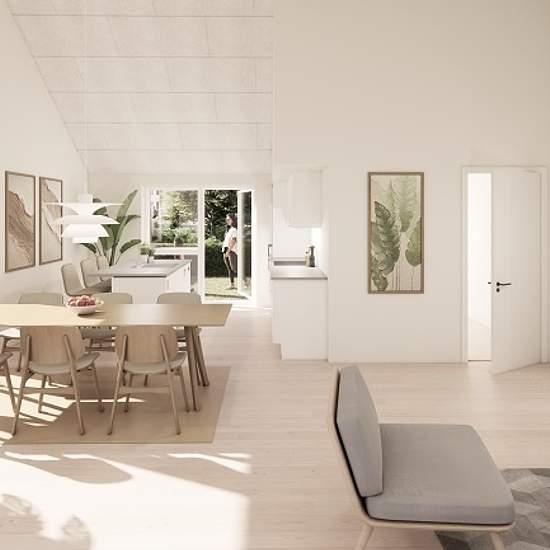 Moderne og lyst 3-værelses rækkehus i ét plan med egen terrasse og forhave i egen oase midt i Årslev. Ejendommen er opført med fokus på bæredygtighed, fællesskab og arkitektonisk variation. Facaderne består af varmebehandlet træ, hvilket understøtter den grønne profil. Ejendommene opføres som en del af Fremtidens Forstad i Årslev, syd for Odense beliggende i naturskønne omgivelser omkring Vindinge Å. Der er derudover kort afstand til indkøb, institutioner og sportsfaciliteter. Lejligheden består af entré, badeværelse, et værelse med ét skab,...